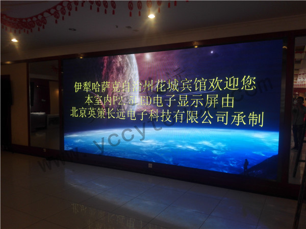伊犁花城賓館此次與英策公司合作,購進我公司P2.5LED全彩屏,共同打造多媒體宴會廳,更好的服務伊犁市及全國人民.